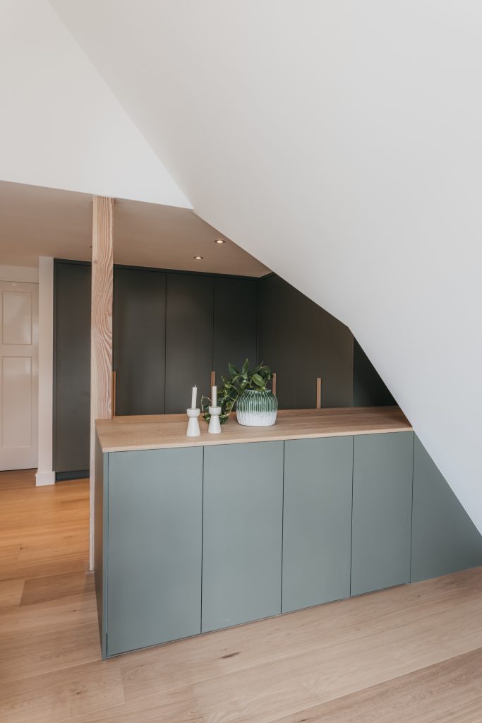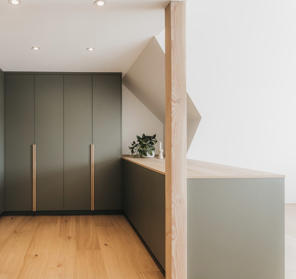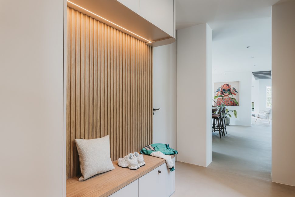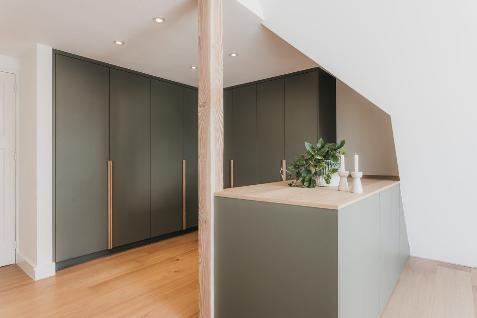 Deze op maat gemaakte kasten bieden een perfecte combinatie van stijl en functionaliteit in de hal en slaapkamer. Elke kast is ontworpen om naadloos aan te sluiten bij de ruimte en het interieur, met slimme opbergoplossingen voor jassen, kleding, schoenen en accessoires. Door gebruik te maken van hoogwaardige materialen en verfijnde afwerkingen, ontstaat een elegant en samenhangend geheel dat zowel praktisch als uitnodigend is. Zo wordt de hal niet alleen een functionele doorgang, maar ook een mooie en georganiseerde entree die direct een goede indruk maakt.
